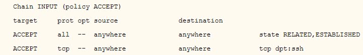 sudo iptables -A INPUT -p tcp --dport ssh -j ACCEPT